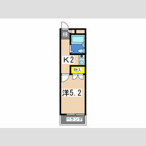| 間取り | 1K(洋5.2 x K2) | 主要採光面 | 南 |